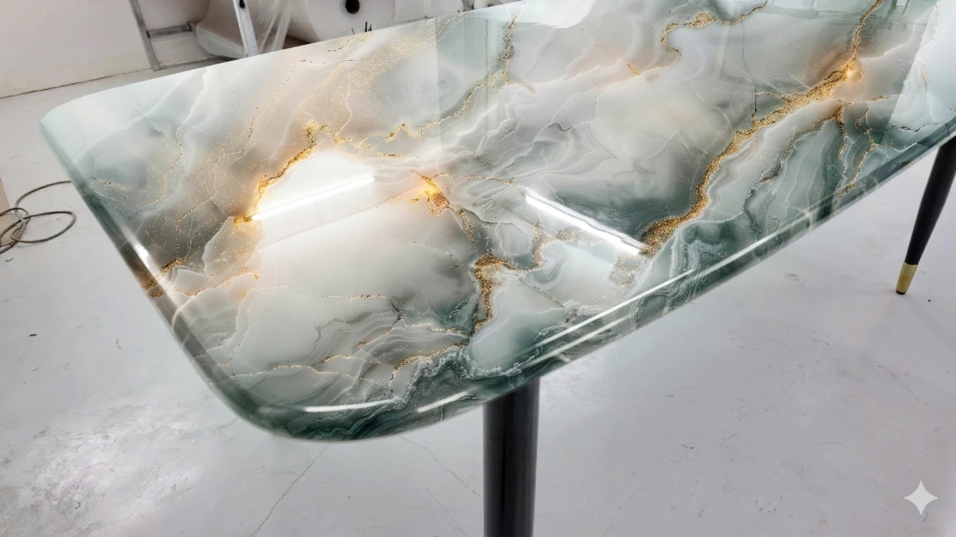 Mặt Bàn Ăn Vân Ngọc Xanh Ánh Vàng VD-056