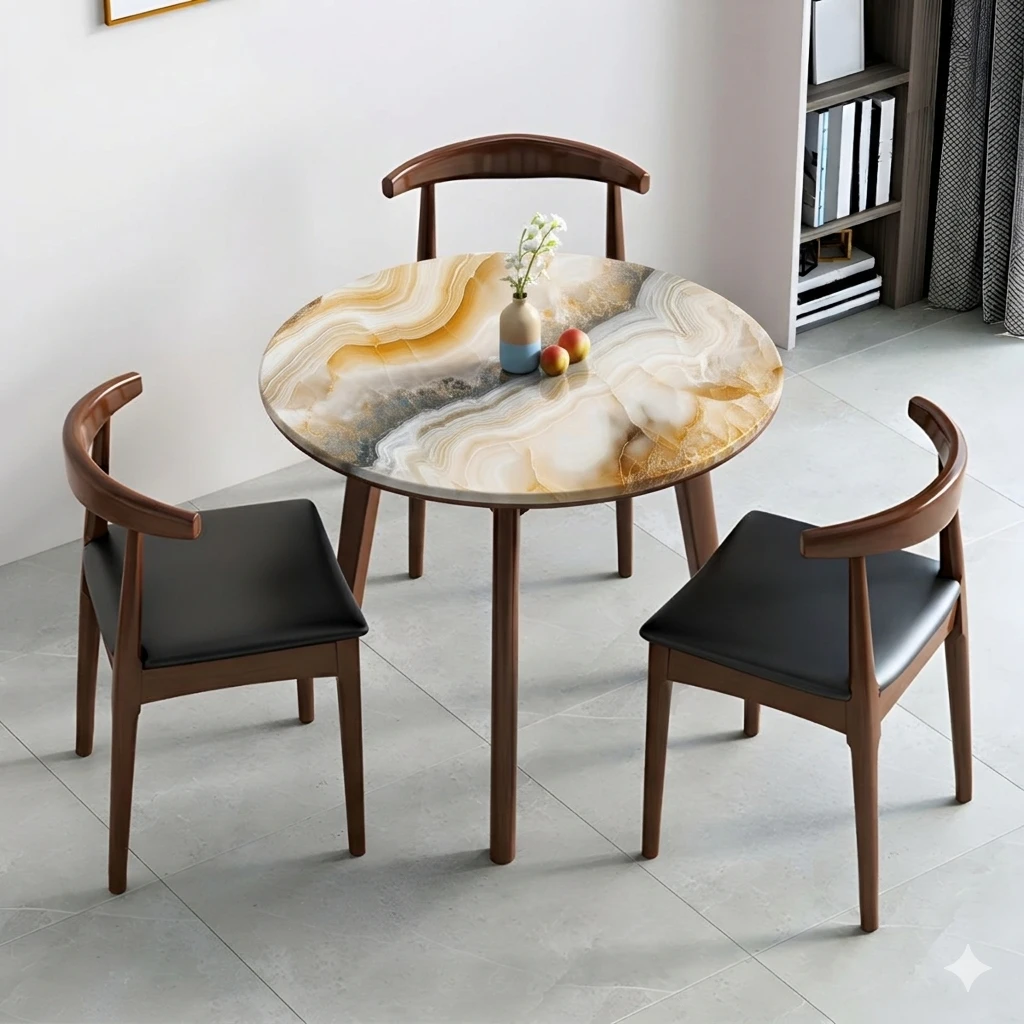 Mặt Bàn Tròn Gỗ MDF Vân Đá Canbesto – Chống Thấm, Chống Ố, Thiết Kế Hiện Đại